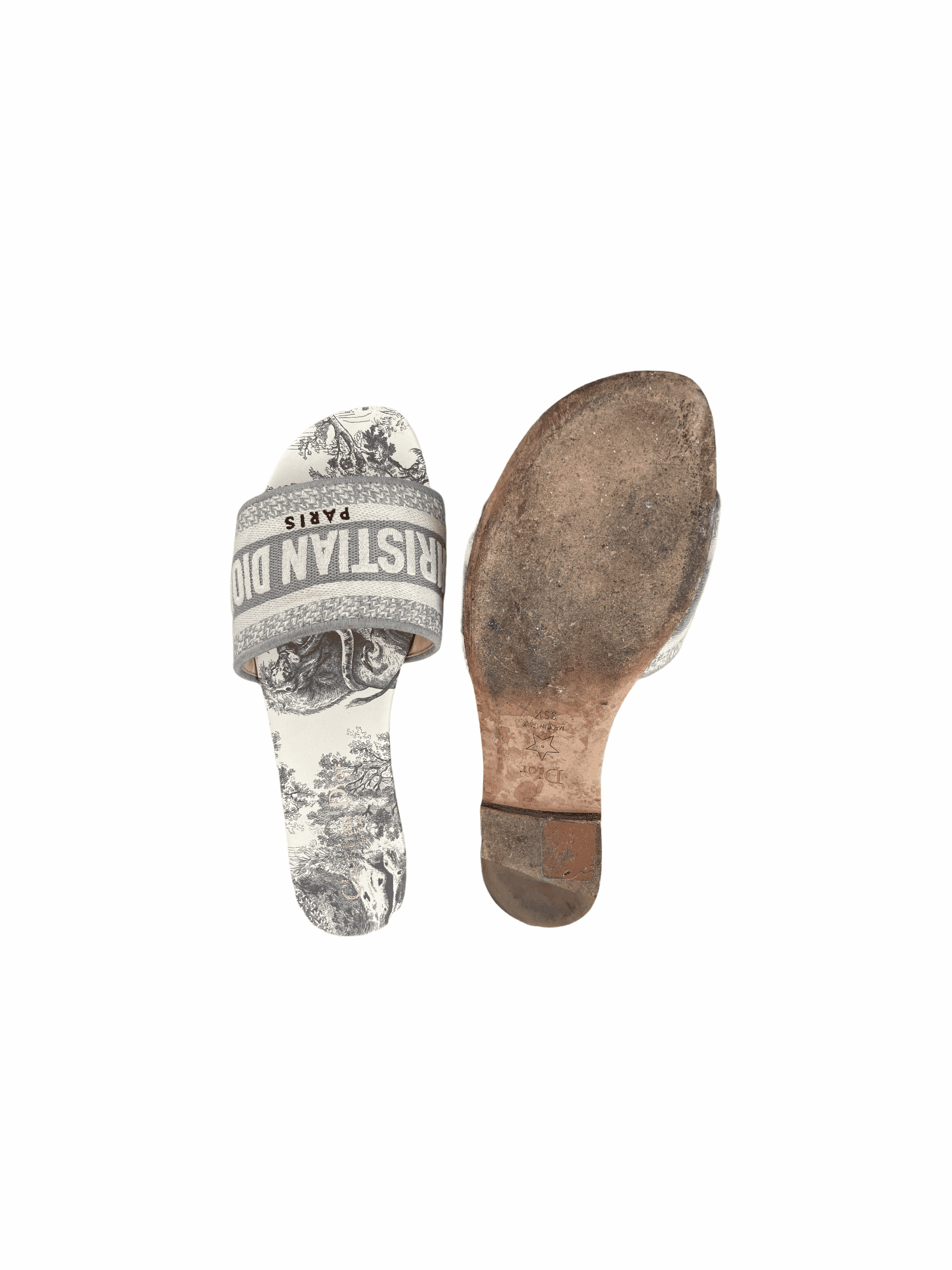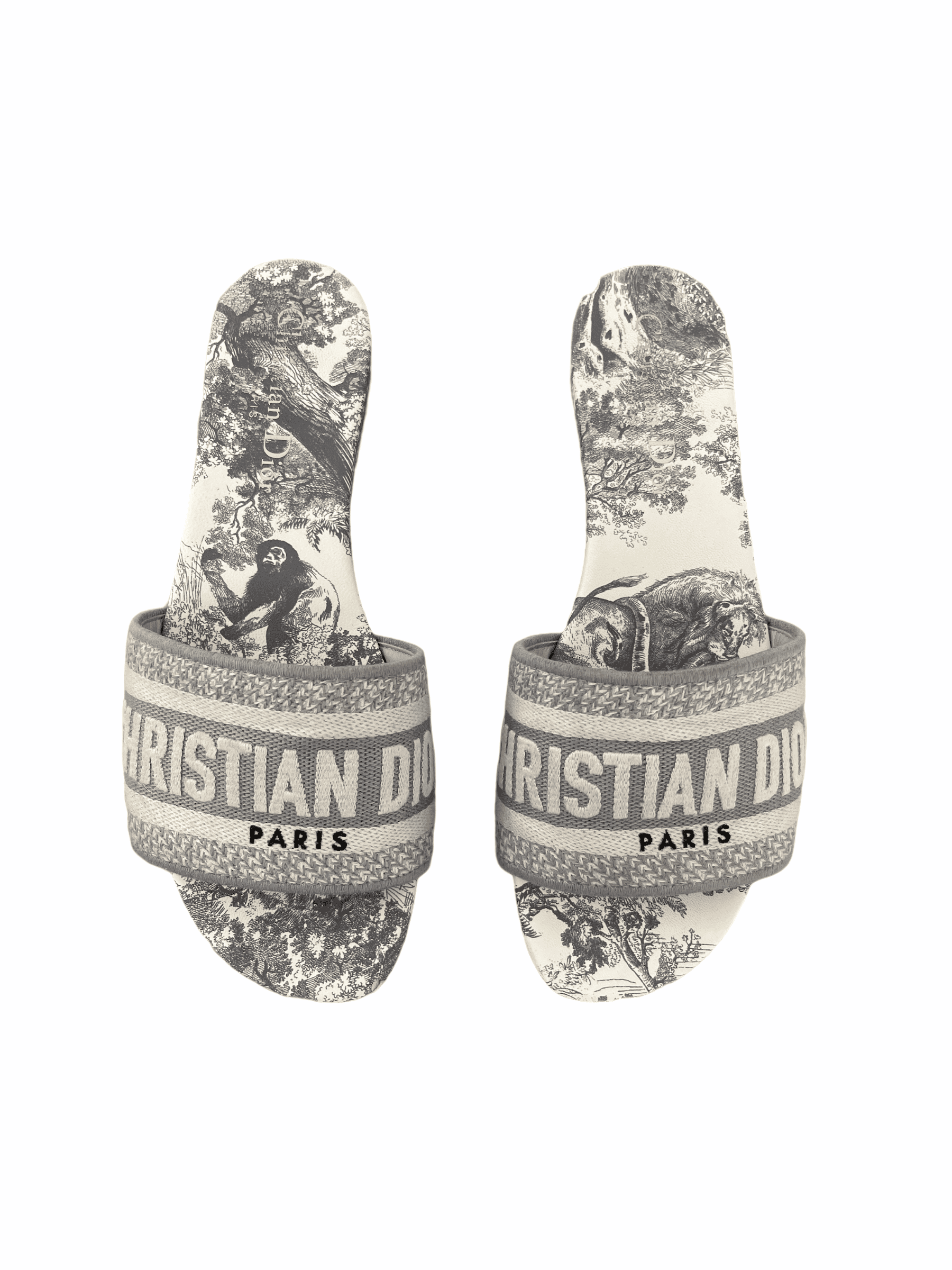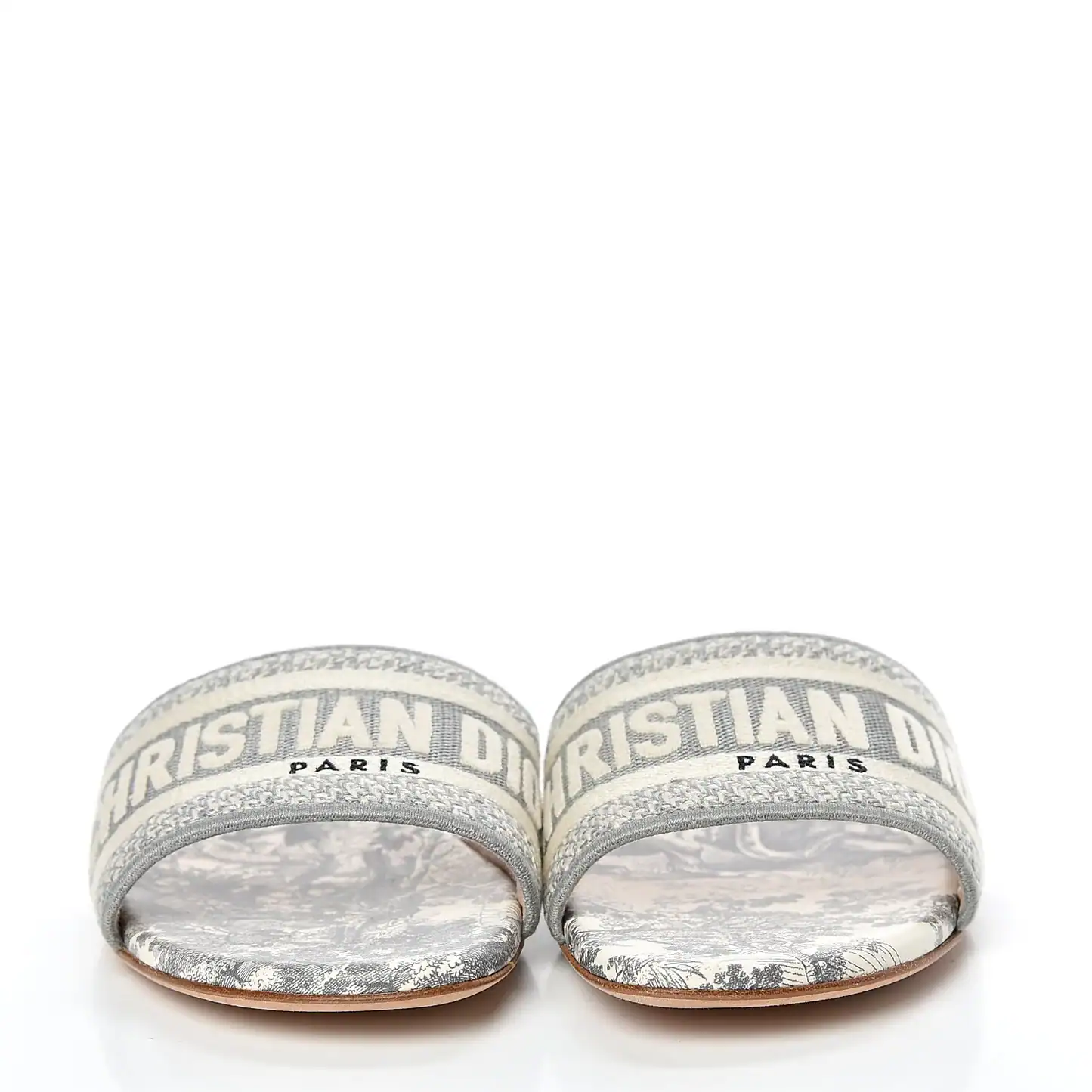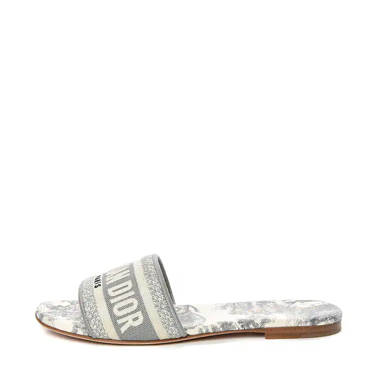 Dior Dway Slide Gray Embroidered Cotton and Toile de Jouy Motif Slipper