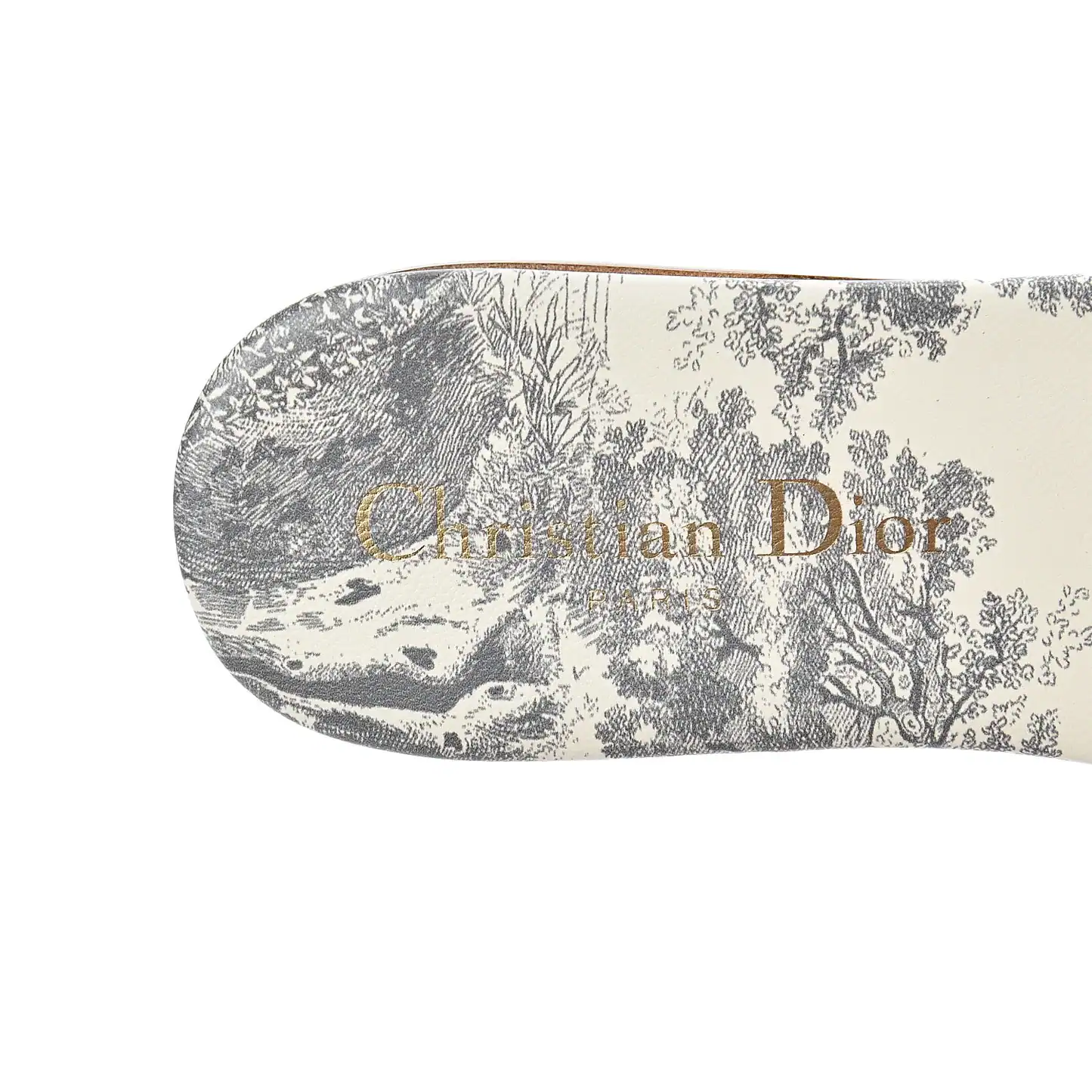 The Dway slide is a hallmark and timeless style honoring the House’s Toile de Jouy motif. The gray upper has an embroidered Christian Dior Paris signature for an instantly recognizable touch. Its streamlined silhouette makes it easy to slip on to complete a relaxed look. The shoe will pair well with other Toile de Jouy creations from the collection.
