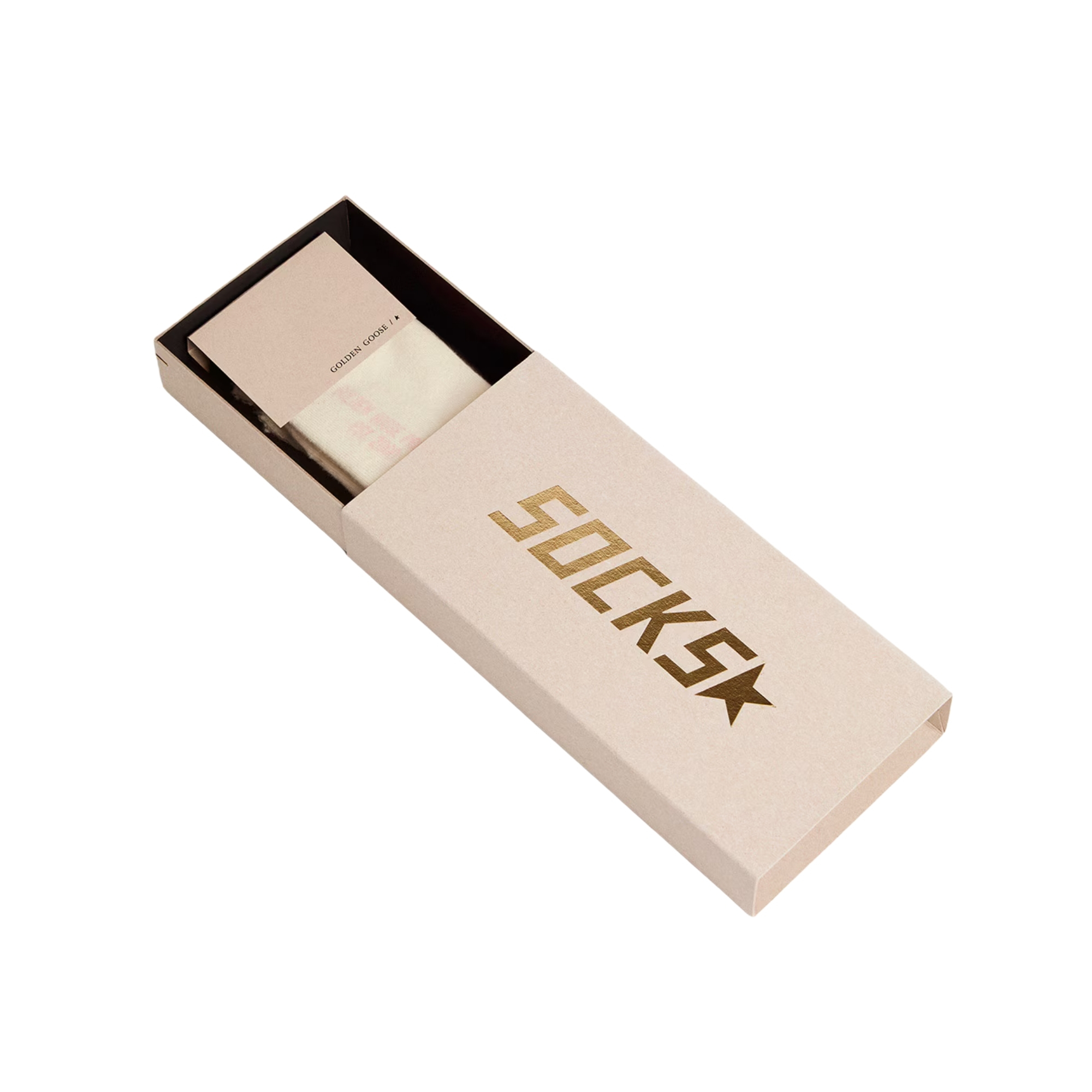 The must-have accessory for a total Golden look. These papyrus-white socks feature a deep welt with distressed finish and baby-pink striped logo.