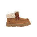The Funkarra is always invited to the annual winter cabin getaway trip with the girls. We’d like to introduce you to our frosty weather BFF, The Funkarra Cabin Cuff. She brings the best snacks, builds the best campfires, and will laugh with you all night long. This boot offers the look of a bootie and the feel of a slipper with a bold 1.5″ platform. It features statement laces to accent its fixed cuffed collar. Our beloved soft suede upper pairs with a soft UGGplush™ lining for a cushioned feel and elevated look