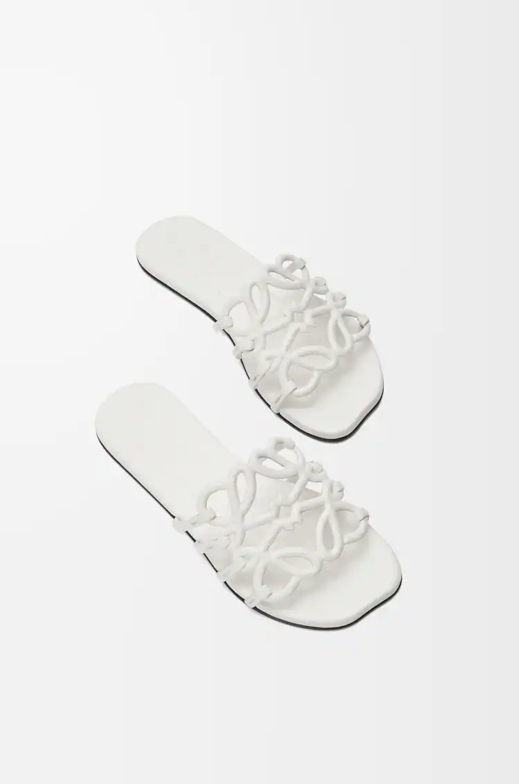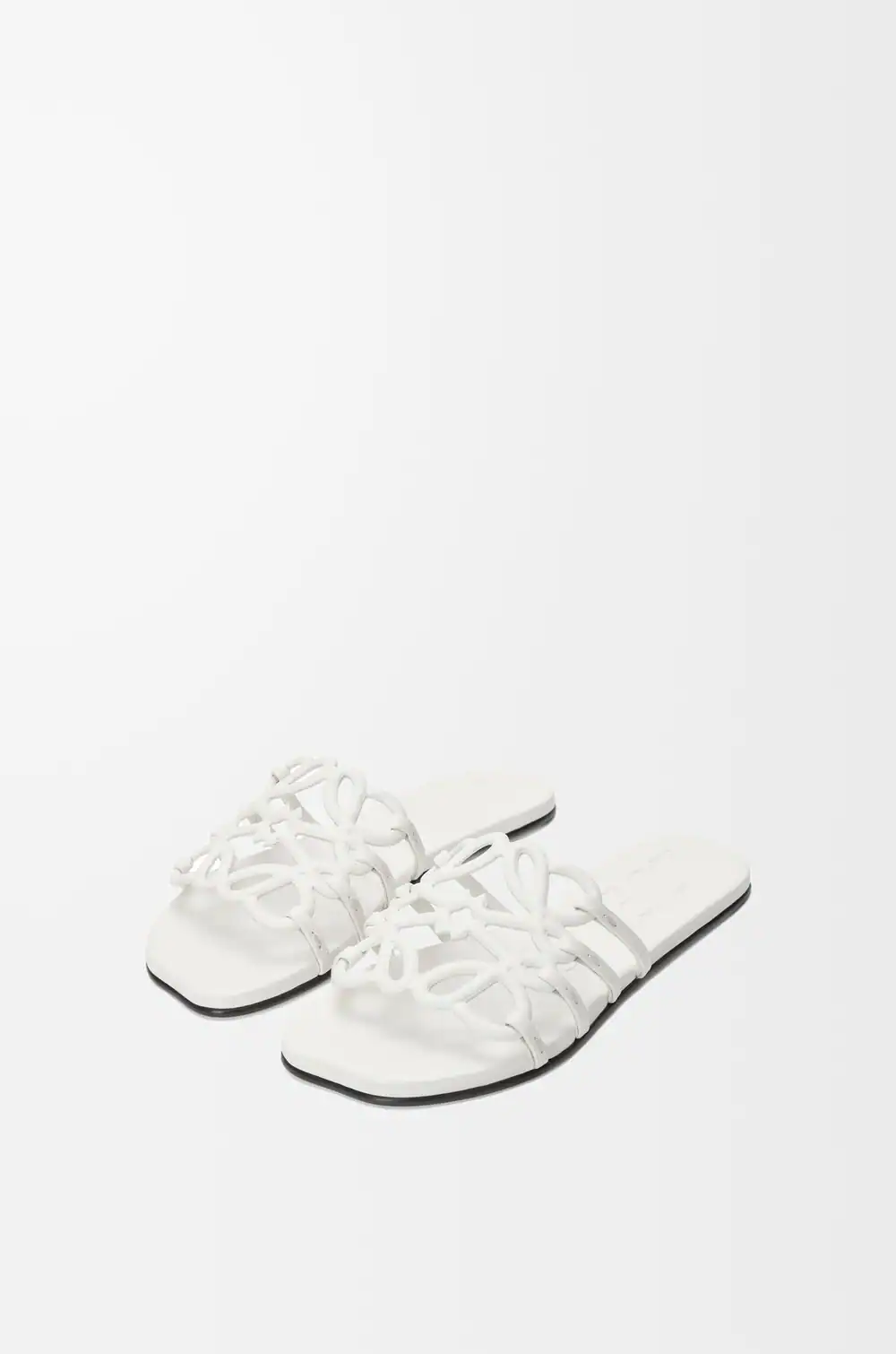 lOEWE Petal Anagram Slide In Soft Calfskin Anthurium White