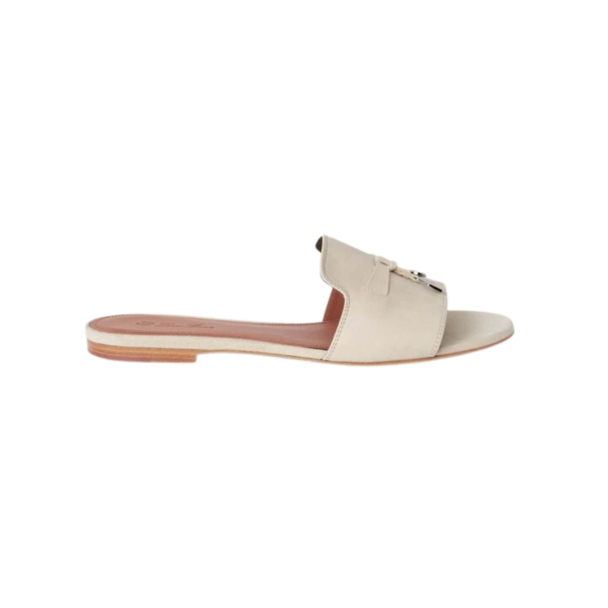 Loro Piana Summer Charms Sandal Suede Goatskin Pearl Powder