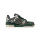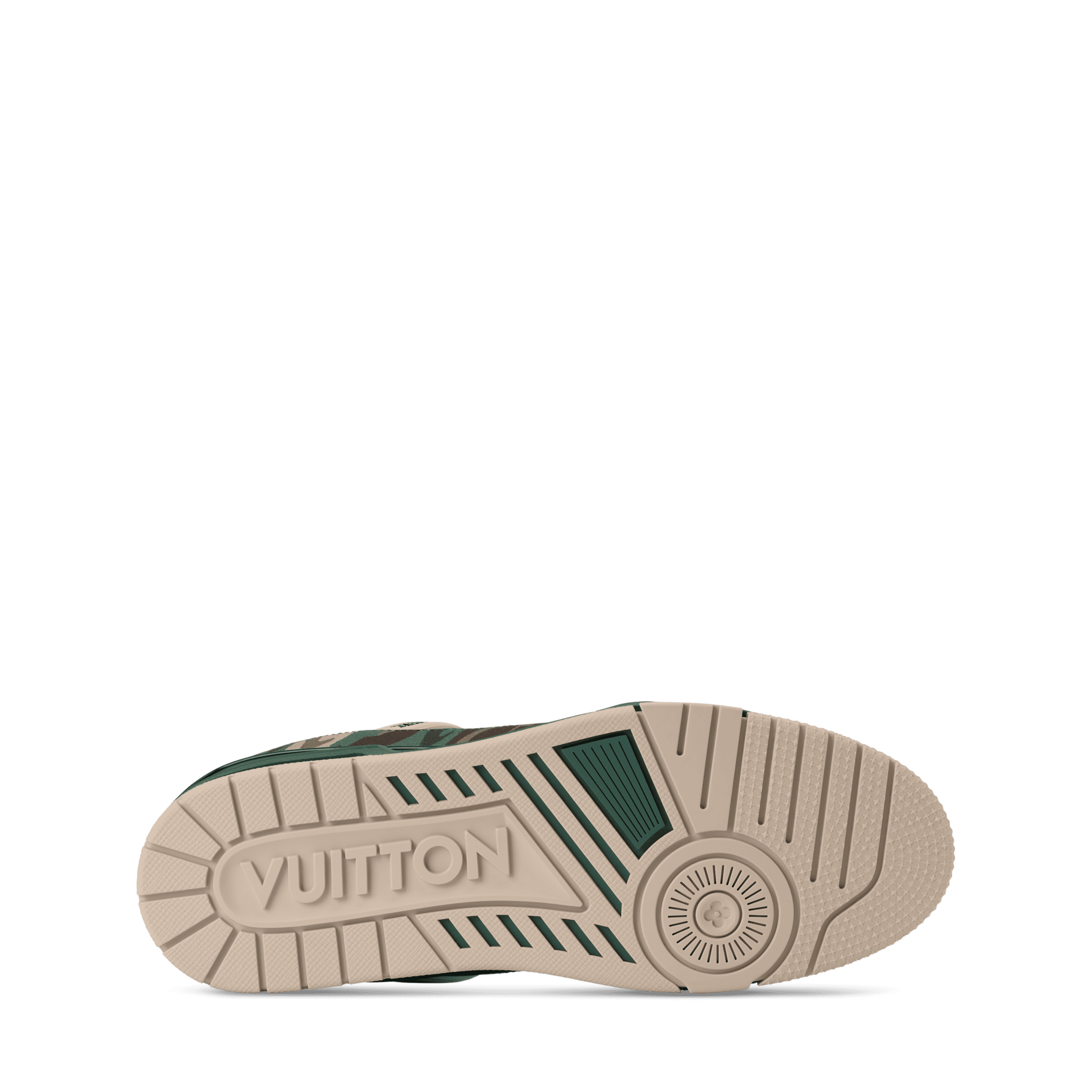 This seasonal edition of the LV Trainer sneaker comes in technical canvas printed with the LV Camo motif of the Fall-Winter 2025 men’s show. The upper, which is painstakingly constructed from more than 80 pieces, is complemented by rubber LV Initials and Vuitton signatures. This model is finished with a two-tone rubber outsole decorated with Monogram Flowers.