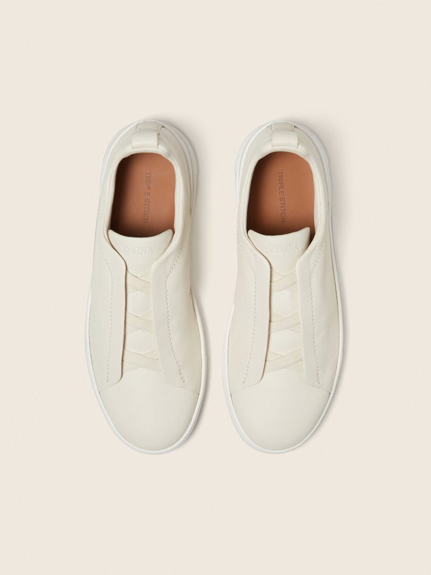 The Bianco Oasi Triple Stitch™ SECONDSKIN sneakers are crafted from specially selected leather for even more flexibility. The Brand’s signature triple-crossed elastic detail ensures an easy slip-on fit, while evoking the traditional hand-stitching of tailored jackets to symbolize and honor ZEGNA’s legacy of fine craftsmanship. The super soft, light uppers are complemented by a tonal rubber sole.